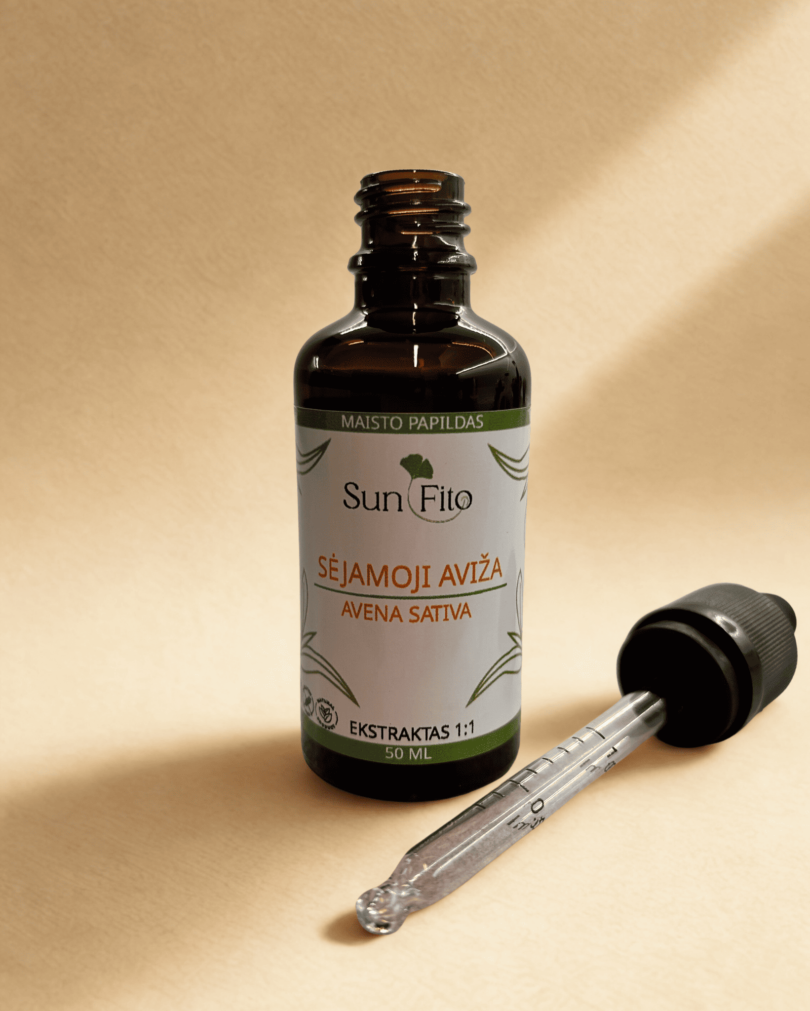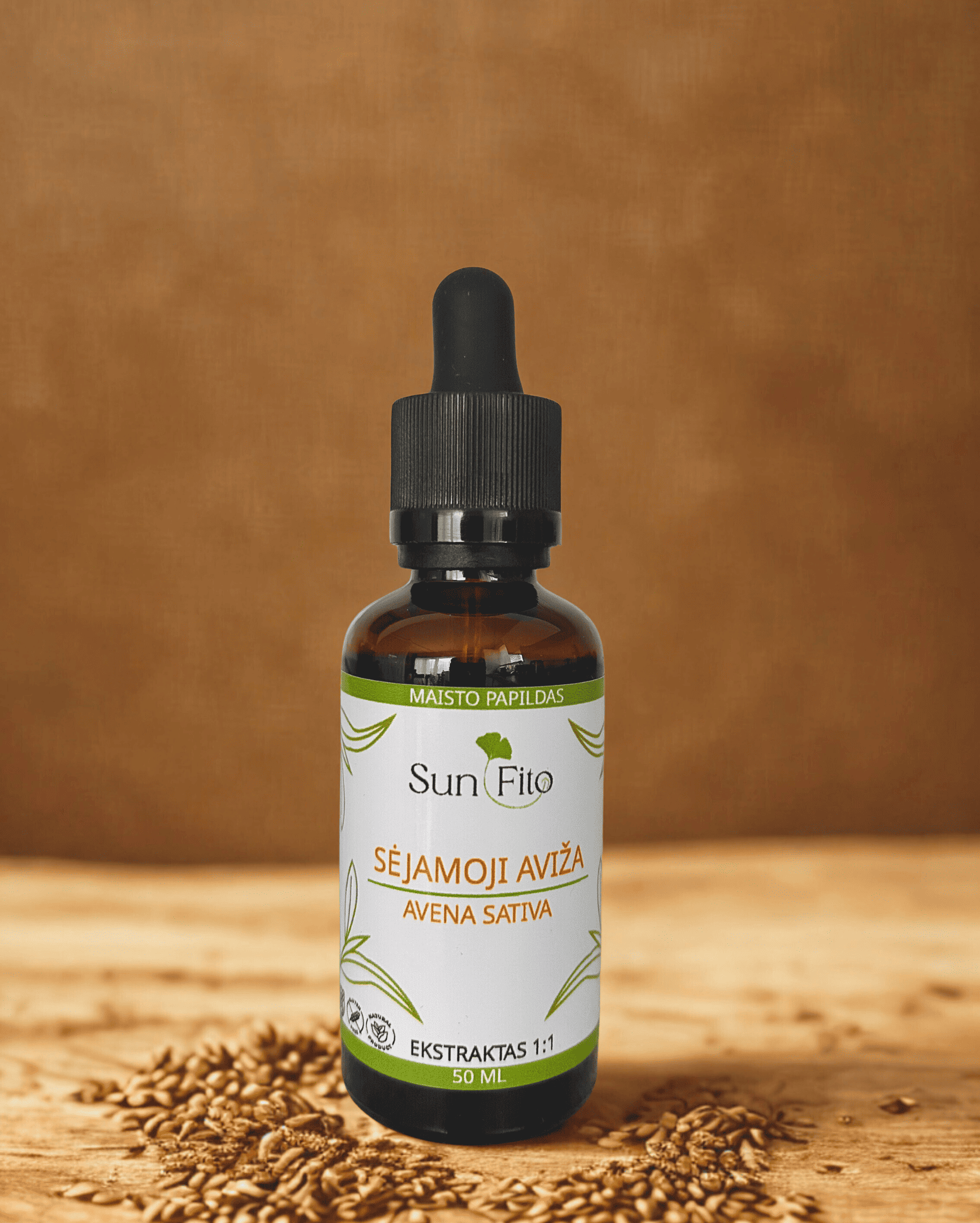 | Sėjamųjų avižų (lot. Avena sativa) augalo lapų/stiebų ekstraktas | 1 mg | – ** |