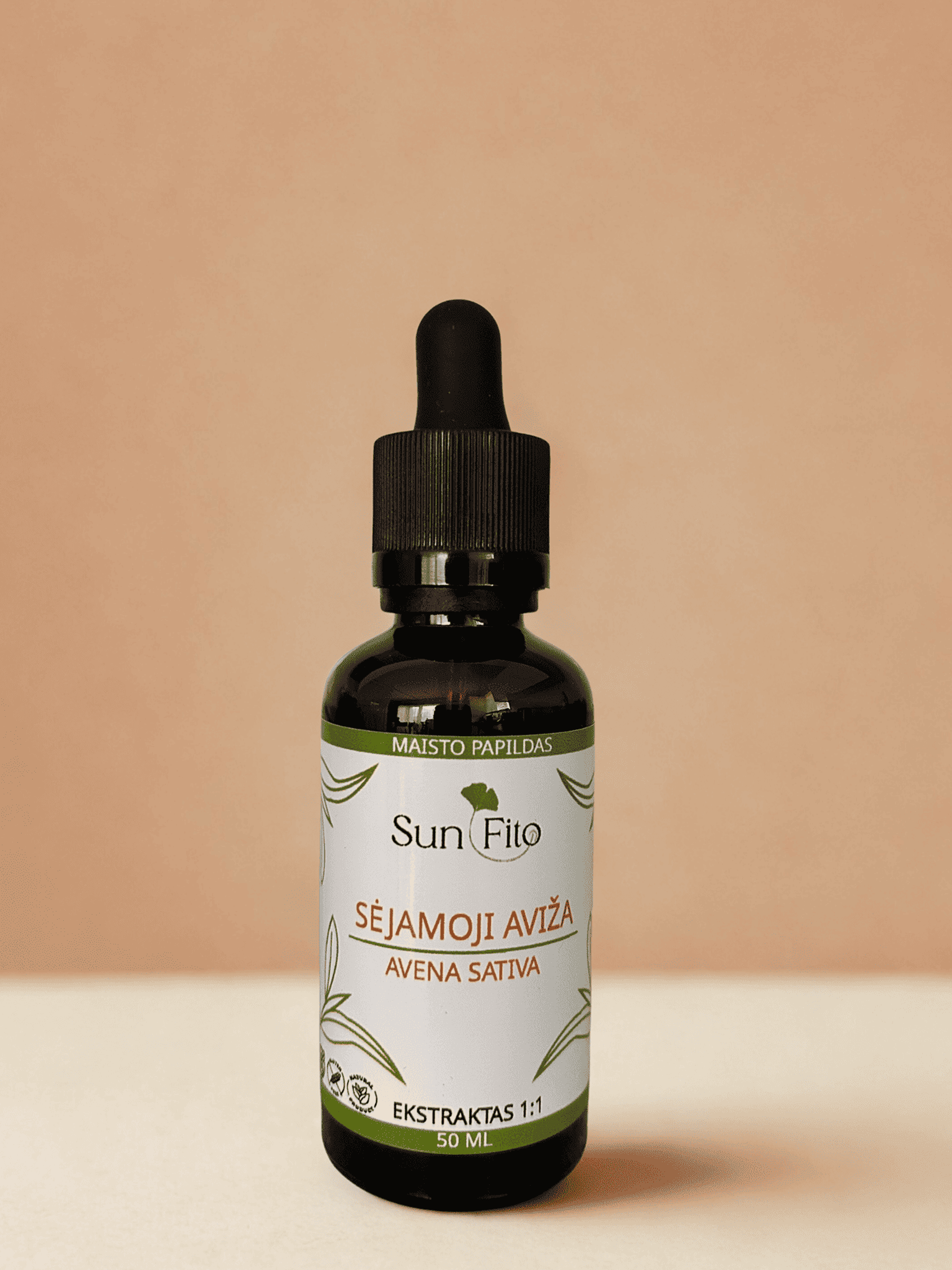 | Sėjamųjų avižų (lot. Avena sativa) augalo lapų/stiebų ekstraktas | 1 g | – ** |